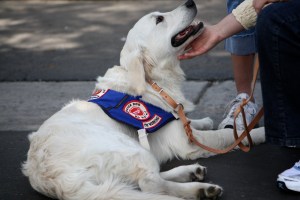 Sometimes service dogs’ work is a “game” to them and their tail wags alot.  Here, you’ll witness no tail wagging, as Windsor is concentrating on the seriousness of his work, something he does with great pride.  Before we cross the street, you’ll see Windsor blocking me and studying something coming towards us.  He is not distracted.  The camera was unable to show that he is watching a bicycle approach and pass us.  You will see the bicycle pass us safely, and then of his own initiating, Windsor moves into the “Heel” position on my left and determines when it is safe for us to cross the street.  This is amazing for any animal to determine, even more so by the fact that Windsor has received no formal training as to do this.  His instincts, his protection, and his care astounds me daily.