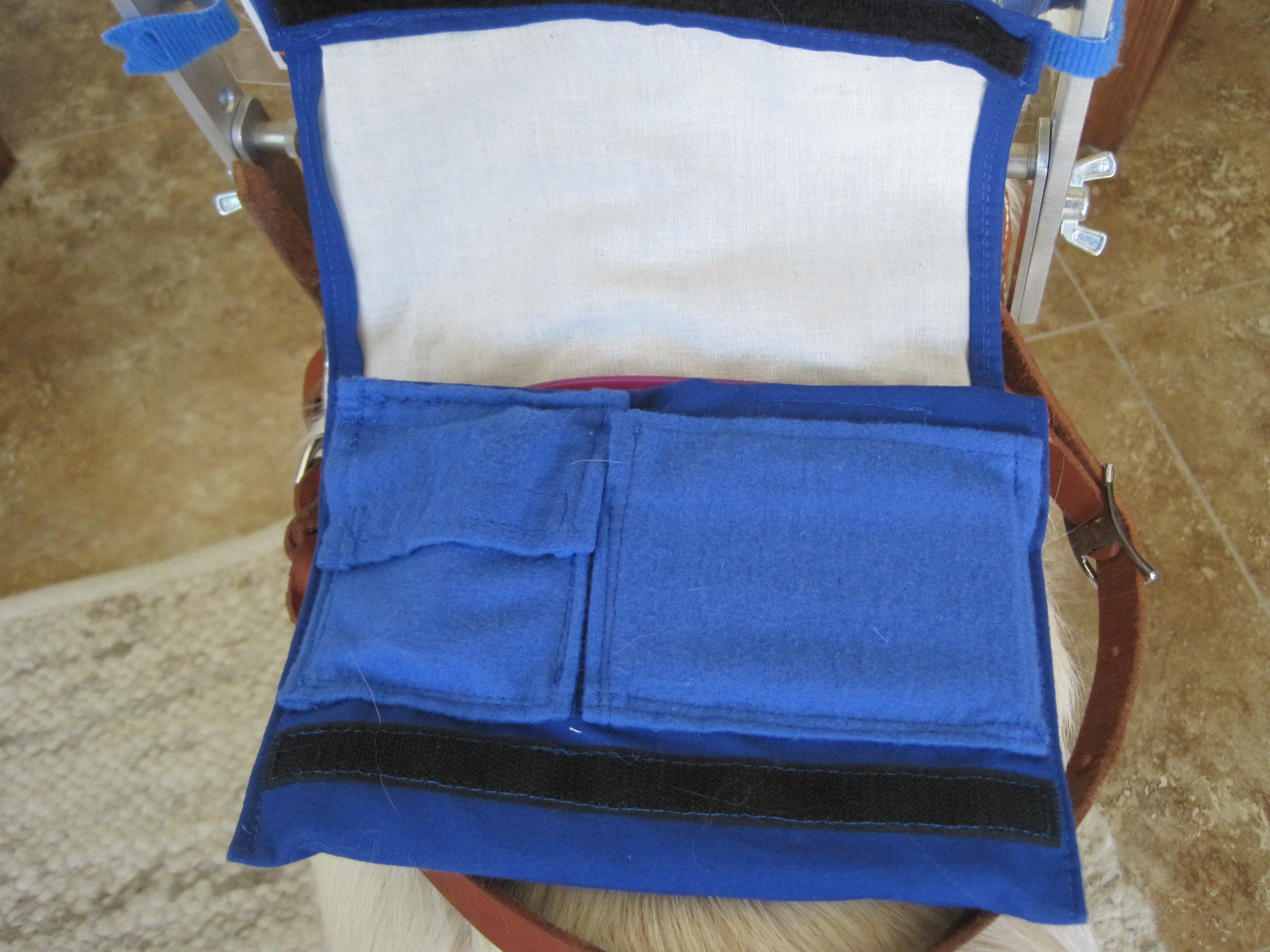I made a royal blue harness bag.