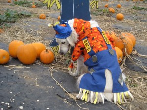 Scarecrow Windsor shows his costume - the patches, the straw, the hat, & the fun of it! He was a great model!