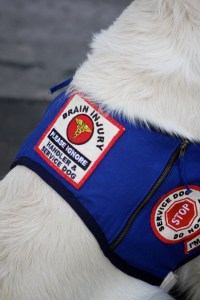 • I also wear my gear because my patches help Christy.  One patch reads “BRAIN INJURY:  PLEASE IGNORE HANDLER AND SERVICE DOG.”  This patch helps Christy because she can point to it when people ask questions which frequently overwhelm her.  In her heart, she’d love to talk and educate, but it’s not physically possible for her.